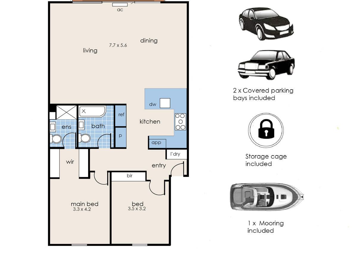 Enhancing the lifestyle appeal is your own private boat mooring with direct and easy access to the bay—perfect for boating enthusiasts seeking convenience and freedom on the water.